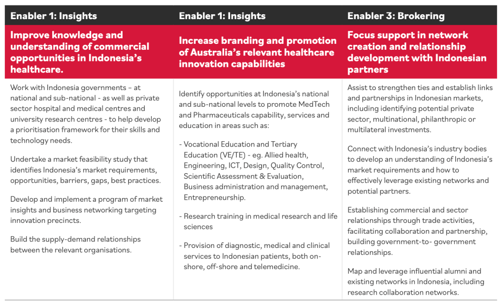 An example of three enablers in support of Australian precincts engaging Indonesia’s health sector: