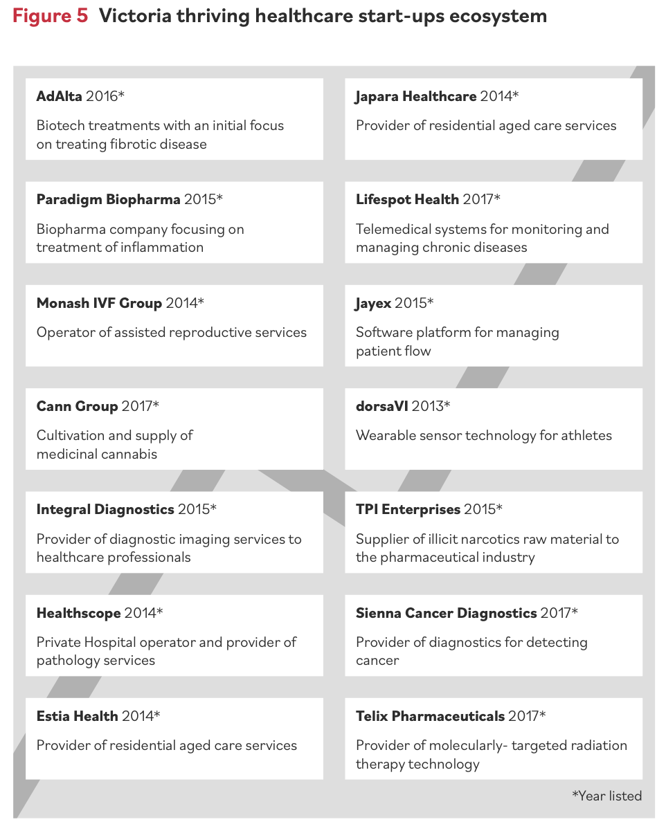 - 5 Victoria State Government, 2017, State of the sector: Medical Technologies and Pharmaceuticals, Department of Economic Development, Jobs, Transport and Resources, July, Melbourne